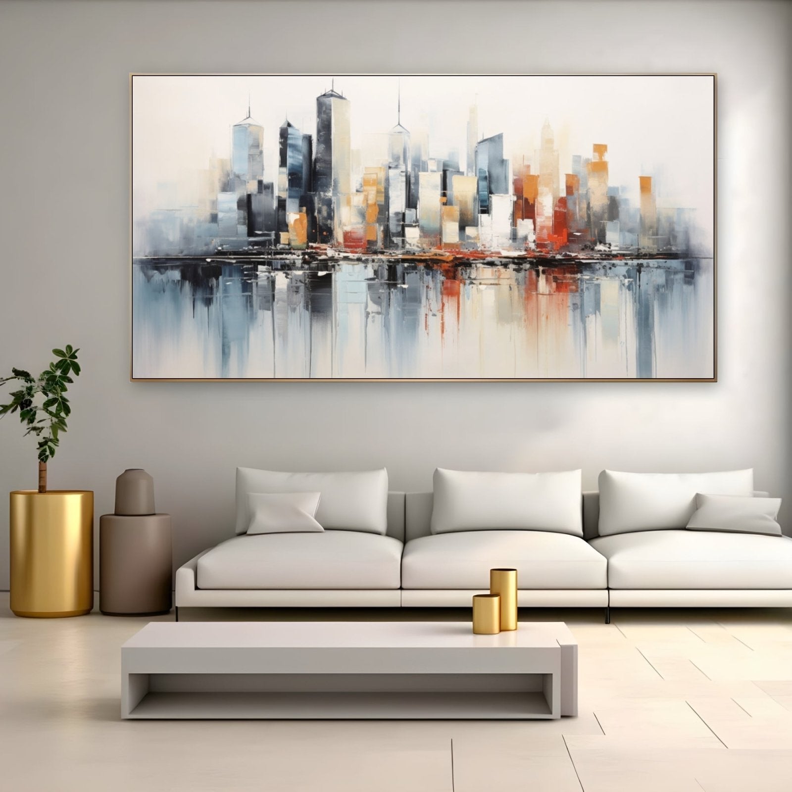Bring an urban escape into your space with "Suspended City", a modern and poetic artwork that floats a cityscape between dream and reality.